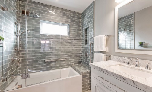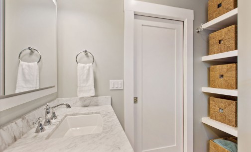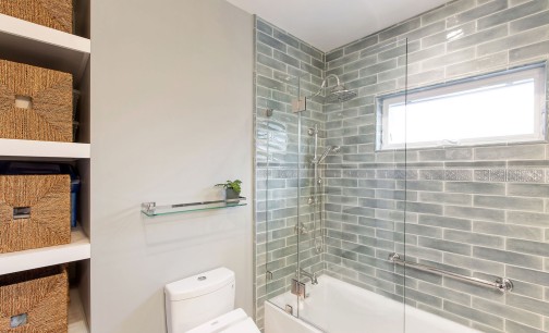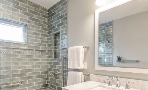 Roberts Electric worked closely with our client and longtime collaborator, HDR Remodeling, on this Berkeley bathroom refresh that won the 2019 REMMIE Award. By taking out a small hall closet, a cramped bathroom was reconfigured, creating a handsome, inviting space. Soft LED lights highlight blue-green tiles—the color palette that is used throughout the home. Creative storage space was also integrated into the bathroom through inventive alcove shelving and storage baskets that are functional while providing natural texture and depth.